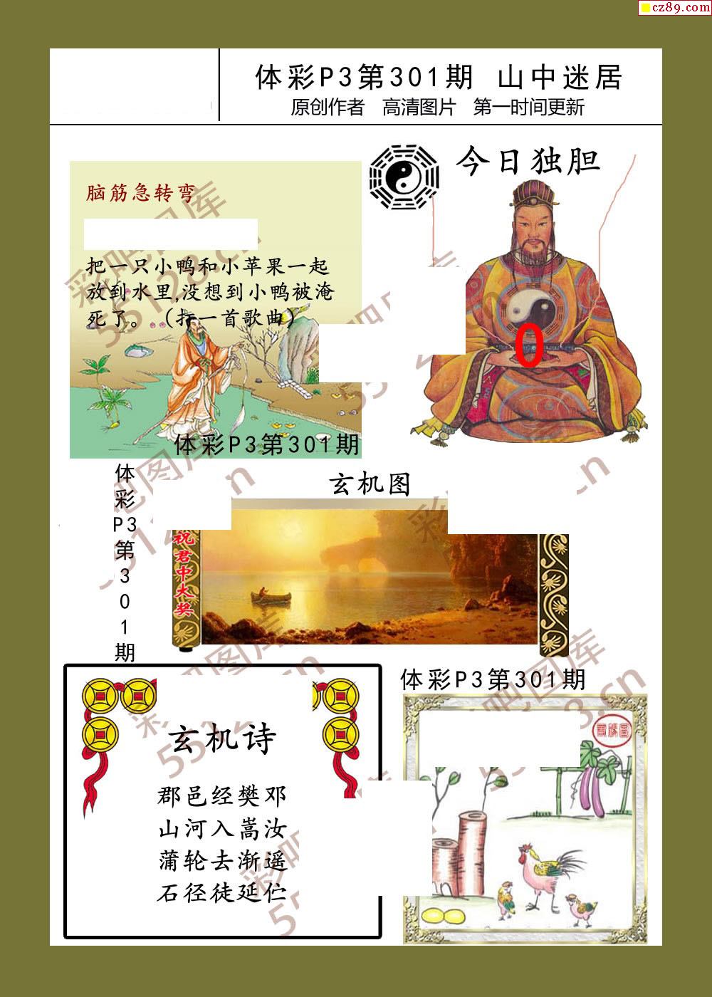 > 山中迷居301期体彩p3图谜